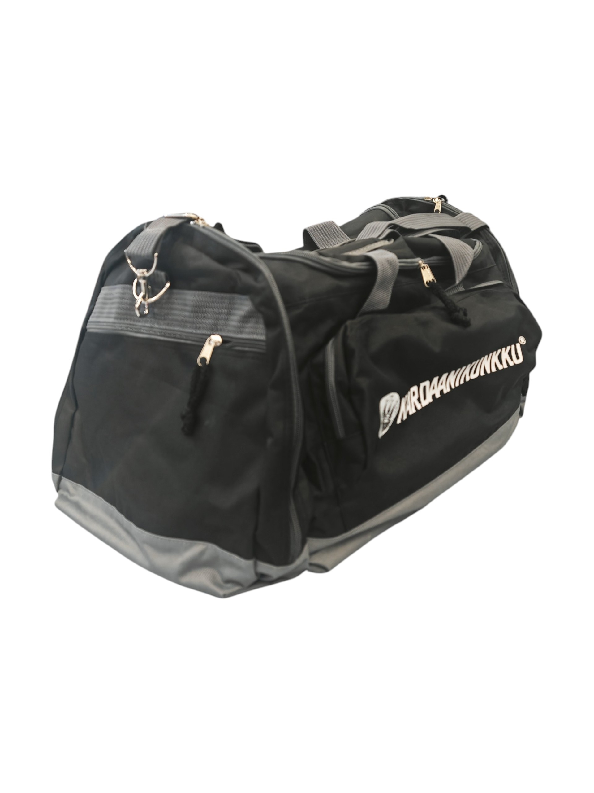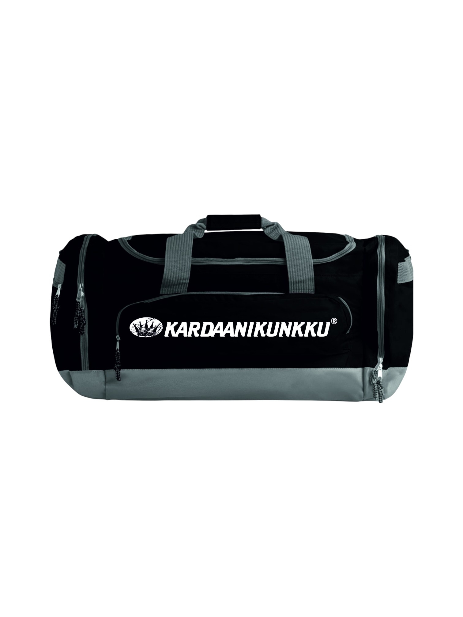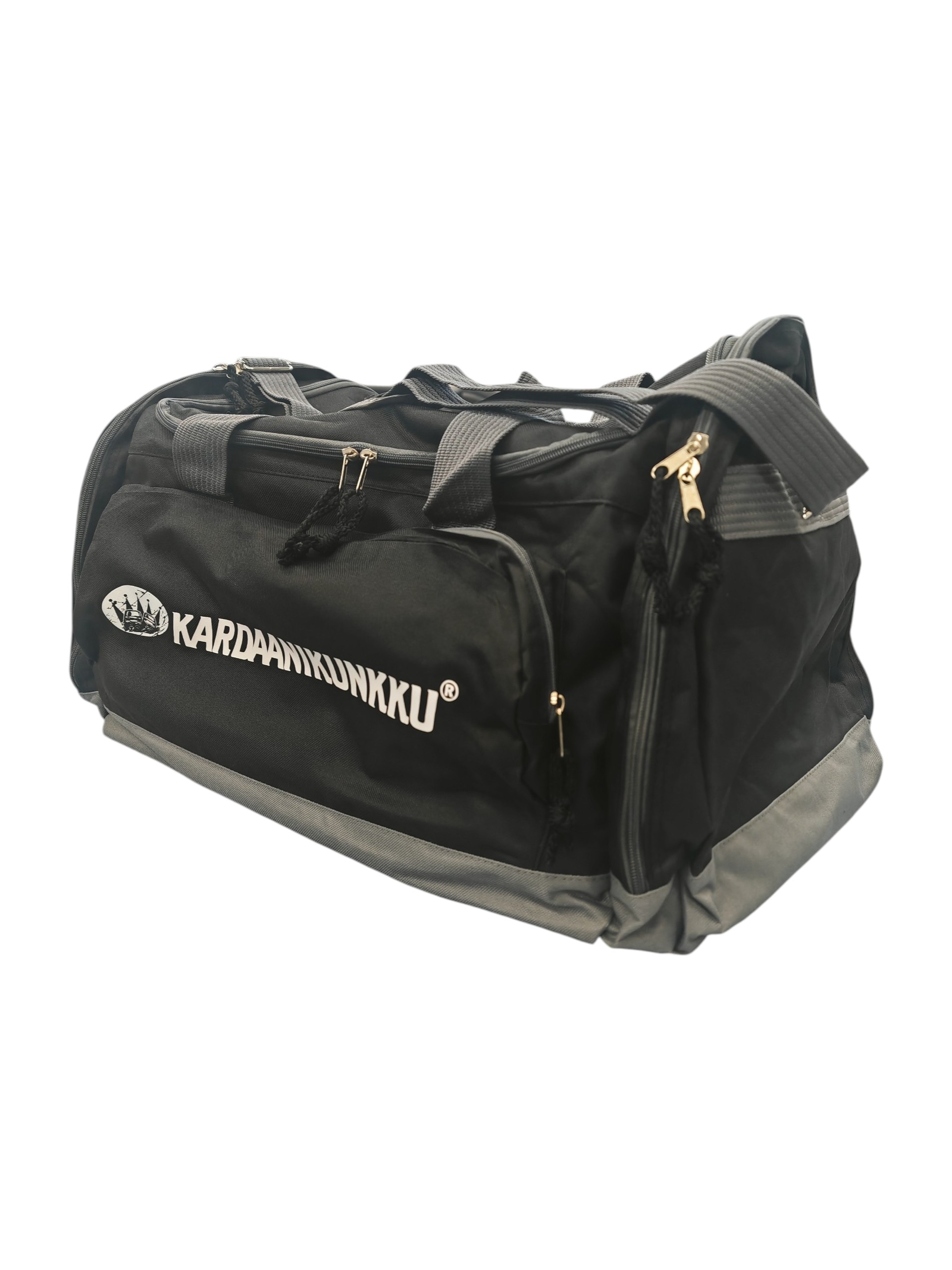 Roomy multifunctional bag in 600D polyester. 5 compartments with zip fastening. Reinforced base. Padded adjustable shoulder strap included. 70 litraa.