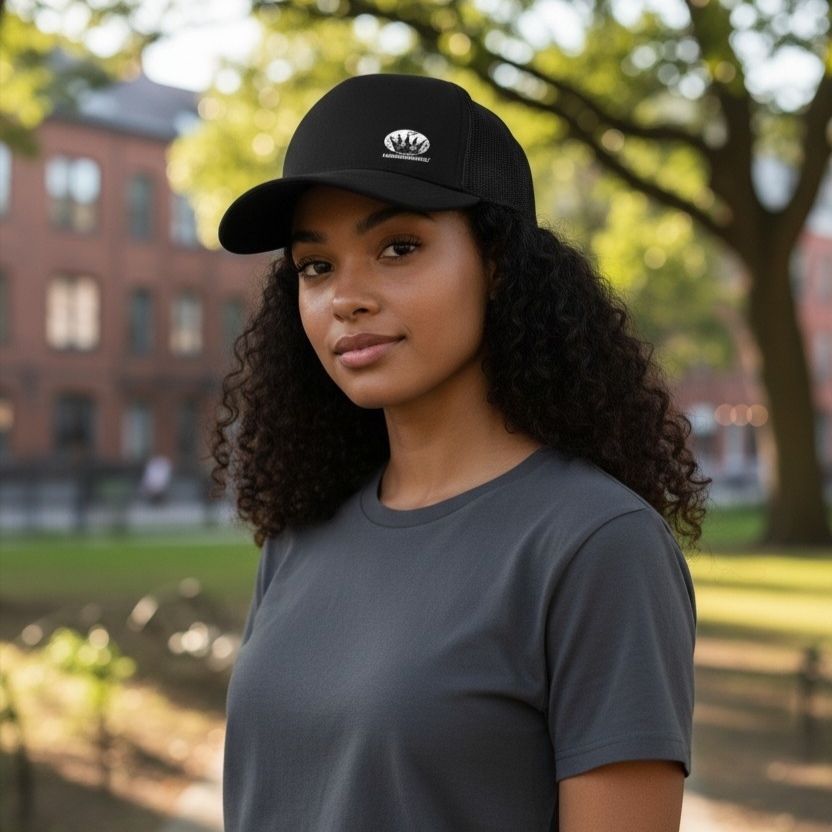 6-paneelinen Trucker-lippis, snap back-kiinnityksellä sekä verkkoperällä.